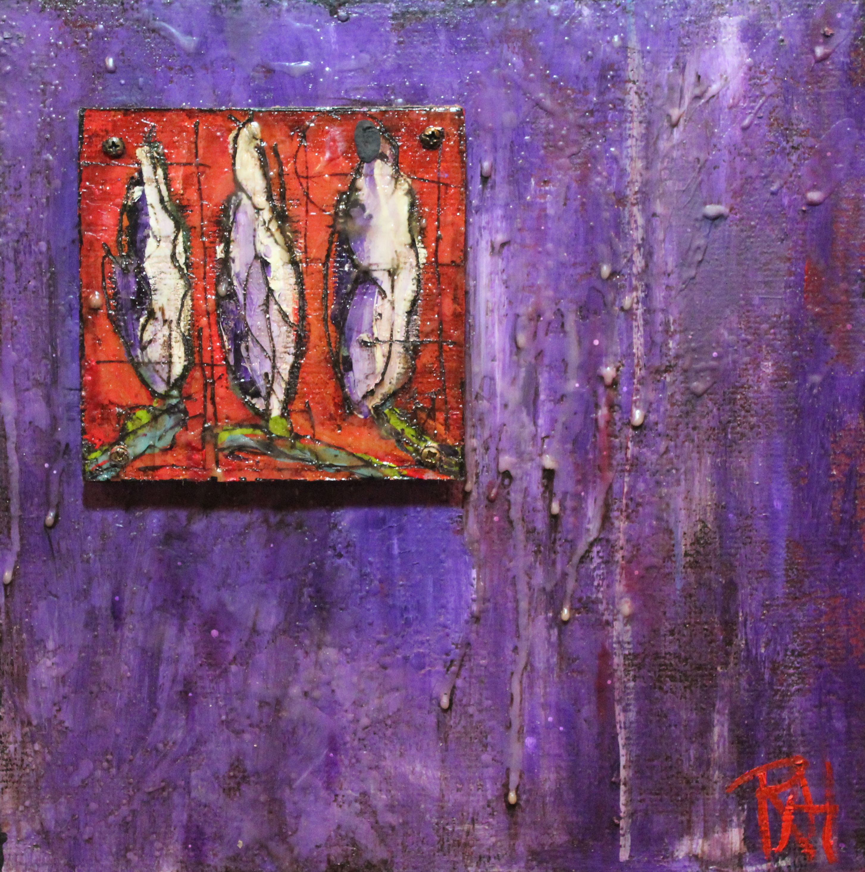 The beauty of vertical spaces with hints of unexpected color is the driving force behind his mixed media works of art. The artist lays down layers of paint on tarpaper and then cuts back into the surface forming unexpected organic lines. Then he applies wax and rubs it with an oil based glaze to create texture.