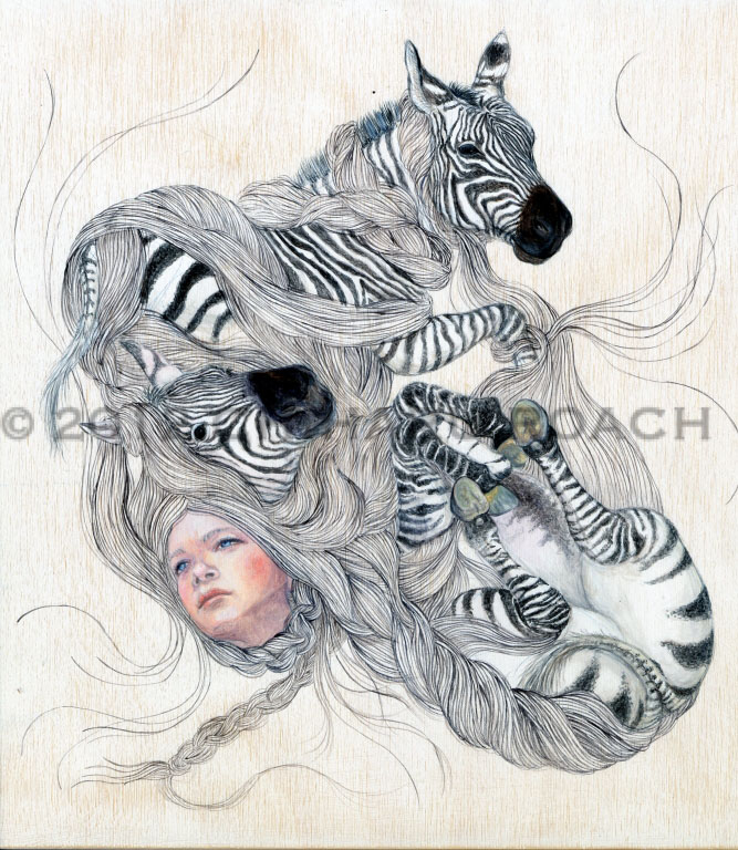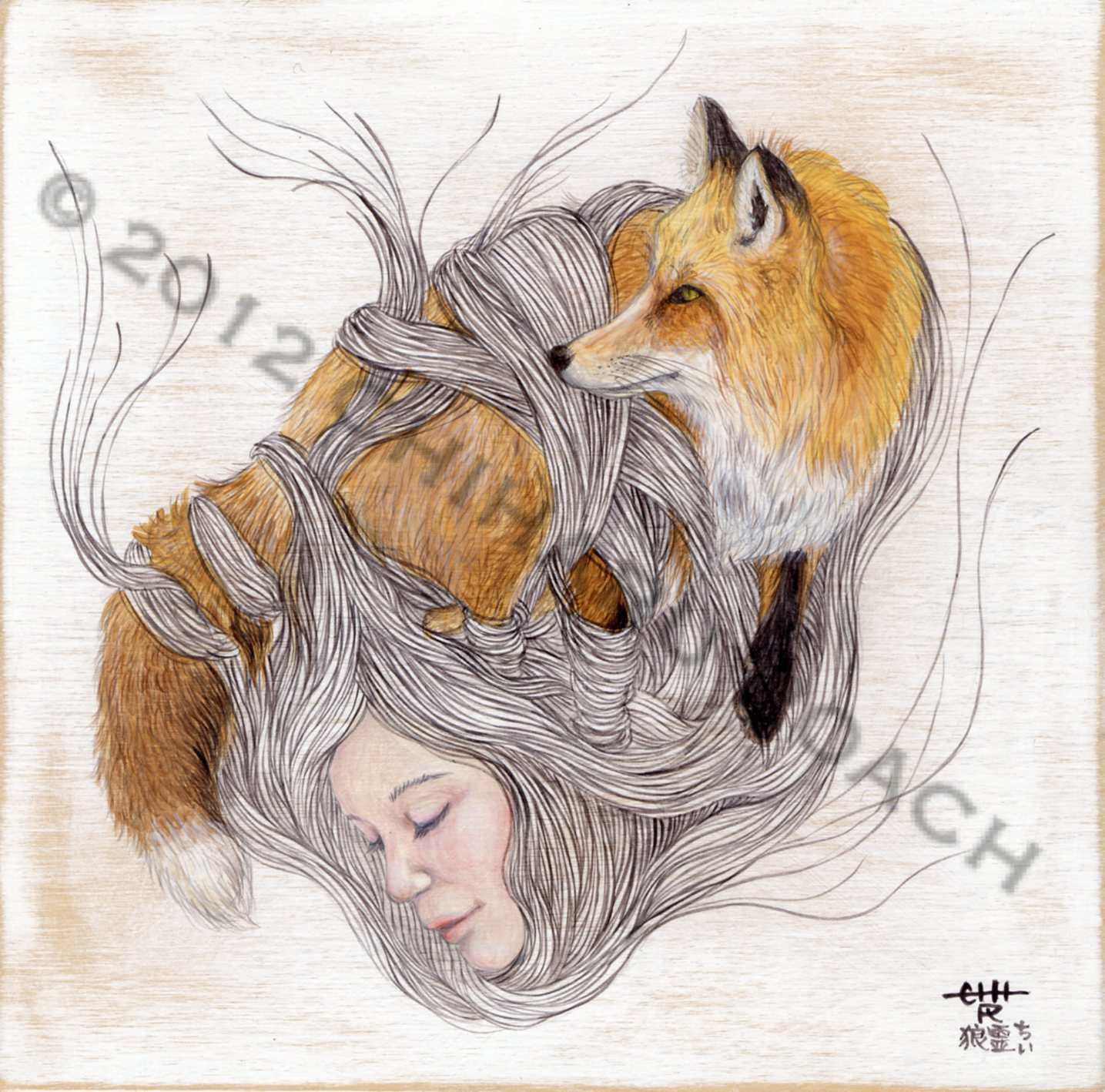 I create each piece of art by first making a pencil outline. After it is complete I paint artist acrylics on wood panels and rice paper from my native Japan. I use fine brushes as they allow me to achieve the detail I require and the ability to paint each strand of hair.